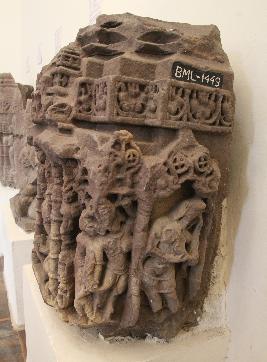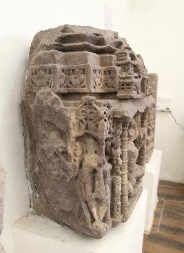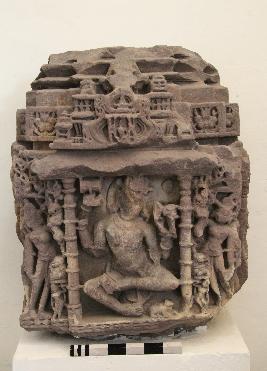Six-armed seated Siva is shown carrying a damru and a snake in his hands. Other attributes are not clear, as they are damaged. His mount Nandi is shown seated on the left side. He is adorned with various ornaments. On either side, female attendants are shown on both the panels.