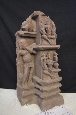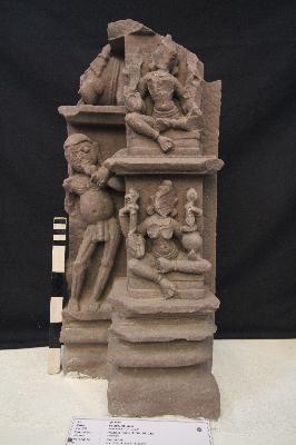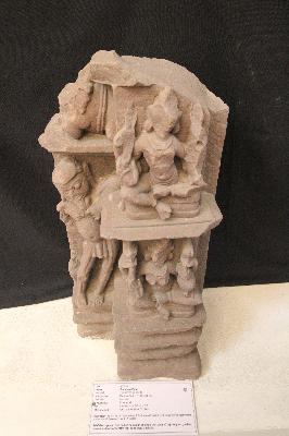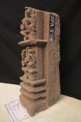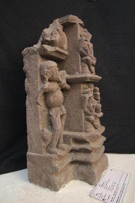 | Description / विवरण | This portion was a part of temple wall jangha depicting two goddess, one on the above, while at the right side a preta is defaced. |