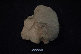 | Description / विवरण | It is a fragmented head of an elephant carved on a granite stone. The fauna is facing right ahead with its eyes wide open with crease slightly above its eyelids. The trunk is curved inward and remains intact, unlike the tusks that are broken and almost invisible. The forehead of the elephant is embellished with a decorative band and a twisted rope is tied around the trunk. The left ear is partially visible and although broken, the upper portion of its forelimb is seen to be emerging out. |