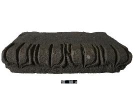 | Description / विवरण | A full-size brick with floral decoration. The decoration looks like a lotus design with three petals. The designs are on the frontal side of the brick. |
