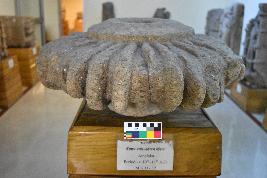 | Description / विवरण | This architectural fragment is a part of miniature amalaka usually seated on top of a shikhara. The edges were carved out forming the shape of a blooming flower, standing on a stone disk. One big perforation is noticed on the upper surface. |