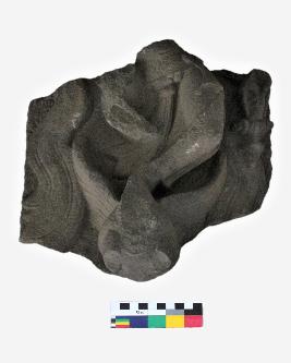 | Description / विवरण | This is a distorted figure of an unknown sculpture, which is perhaps considered Vishnu. The sculpture is mounted over a bird which might be Garuda, where the wings are present and the neck and the head portion are missing. The sculpture is balancing over the vahana by the left leg and the right leg is heavily broken. Uttariyas are present on both sides of the divinity. The sculpture is holding a lotus-like feature on the left hand. Kayabandhi is visible at the waist of the sculpture. Muktadama is also present below the kayabandhi. Upavita is present from the left side of the body. The sculpture is wearing a drapery where antariya is visible. The remaining upper part of the sculpture is completely broken. |