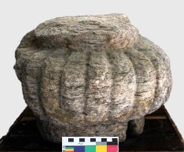 | Description / विवरण | This is a representation of a miniature amalaka, it is decorated with segmented or notched stone disk patterns, with ridges on the rim. It is usually seated on top of a Hindu temple s shikhara. |