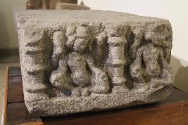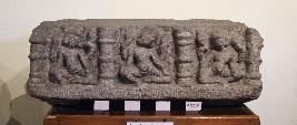 | Description / विवरण | This embellishing stone block bears the carving of male figures in different postures on its three sides of the block, placed under decorative laghustambhas. The frontal side of the block depicts three male figures in lalitasana seated postures separated with laghustambhas in between each figures. They were four armed, their upraised hands are holding lotuses while the lower hands were kept on the knees. All the figures were beautifully adorned with eroded mukuta s, big circular kundalas and katibastras. The right side of the block carries two male figures in the same posture as those in the front, each separated with decorative laghustambhas. The face of the left figure is mutilated along with its laghustambha. They were also shown wearing haras. The left side of the stone block carries two male figures in a lalitasana sitting position as well. Their upraised hands are holding lotuses while the lower hands are kept on their knees. The face of left figure is sadly mutilated. The figures of all the three sides holds same facial expressions including closed eyes, prominent nose and smiling lips, they were decked up with mukuta, kundalas, haras and katibastras as well. |