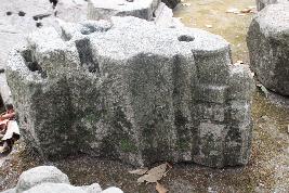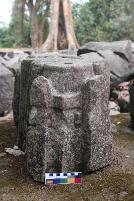 | Description / विवरण | This architectural block, containing shallow sockets and clamp impressions at its top surafce, is surrounded with high relief carvings of horizontal step-like features all over the structure in an allignment. These were again decorated with conical shape features over the steps. |