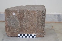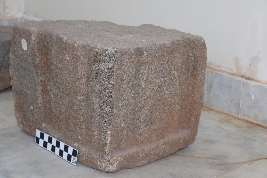 | Description / विवरण | It is a square-shaped architectural block resembling it to be a part of a temple plinth placed on temple base. The block has high relief carvings of tri-ratha style projections in a horizontal step-like features carved on its two sides. Other sides were unadorned with no carvings on it. Here tri-ratha refers to three layered projections. |