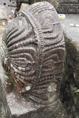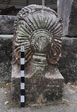 | Description / विवरण | It is a representation of a lotus rosette in an architectural member, supported on a high square shaped platform. The petals are carved from the circular shaped part of the flower in the centre which is again decorated with concentric circles and beaded strings in between. Below that, it has carvings of thick circular rings. The rosette is beautifully caved with broad petals along with decorative beaded rings forming the shape of a blooming lotus. The outer surface of the structure is decorated with carvings of petals with its edge forming the shape of an arch. |