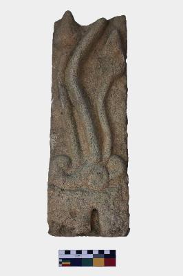 | Description / विवरण | It is a broken architectural fragment having the floral design of lotus buds with stems. At the bottom of the pillar, there is a socket for an iron plug. There are two lotus buds along with the stems and the middle stem does not have the bud because the top portion of the pillar is broken. |