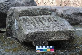 | Description / विवरण | This is an architectural fragment of a temple. The frontal part is composed of architectural design on a sloppy surface. On the other hand, there is a curved design at the lower part of the edge of the fragment. |