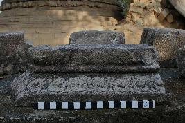 | Description / विवरण | This is an architectural fragment. The upper part of the frontal side is devoid of any decoration, a horizontal bar is present at the middle part whereas floral and pearl shape designs are present in a row at the lower part. |