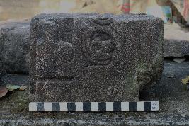 | Description / विवरण | This is an architectural fragment. On above there are iron clamps present. On the right side of the front surface, carvings are present whereas a bird can be seen on the middle part a goose has carved out within a creeper. |