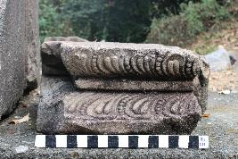 | Description / विवरण | It is rectangular shaped block with a dowel markings and clamp impressions still intact. The design is found on the frontal part.It has a concave-sjaped profile with floral petals carved on it. |