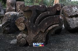 | Description / विवरण | This is an architectural fragment of a temple. On the frontal part, there are branches of carved creepers radiating toward each direction. On the lower part, there is a breakage. |