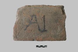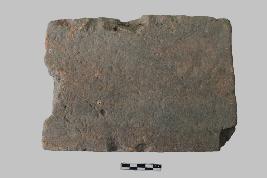 | Description / विवरण | It is a rectangular terracotta brick with plain uneven surfaces and partially chipped off edges. Two arrises of the brick are broken. It was originally made of coarse-grained red clay. Signs of weathering are prominent from the flaking and scratches. The cross-section of the brick confirms its gritty texture. |