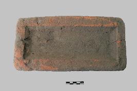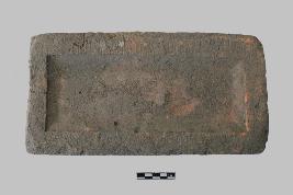 | Description / विवरण | It is a double-sided frogged rectangular terracotta brick with thick margins, plain uneven surface and partially chipped off edges. It was originally made with coarse-grained red clay. Signs of weathering are prominent from the flaking and scratches. Now it has a granular texture. |