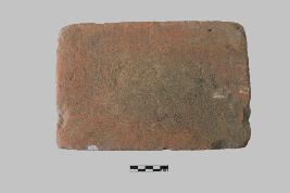 | Description / विवरण | It is a rectangular terracotta brick with plain uneven surface and partially chipped off edges. It was originally made with fine red clay, but signs of weathering are prominent from the flaking and scratches. Now it has a chalky texture. |