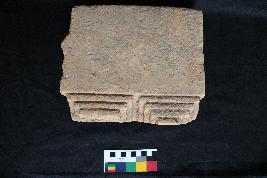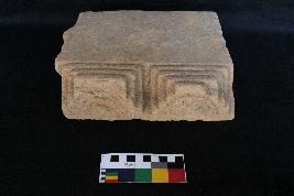 | Description / विवरण | It is a fragment of a rectangular terracotta brick with decorated surface and partially chipped off edges. The decorative stretcher (wider surface) of the brick has two sets of telescopic slab-like projections and arch patterns on it. It was originally made of coarse-grained red clay. Signs of weathering are prominent from the flaking and scratches. Cross-section analysis of the brick confirms its gritty texture. |