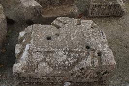 | Description / विवरण | It is an architectural block consisting of a total number of nine soket on the top decorated with two semi circular beaded strings underneath an inverted triangle shaped pattern carved out from the bottom part of the block in a row. The upper part of the block is decorated with floral patterns. |