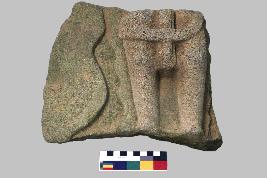 | Description / विवरण | This is a sculptural remains of an unknown figure. The upper portion of the waist is completely missing. There is a stele present behind the sculpture and an uttariya is present on the right side of the sculpture. There is a brief garment present along with the waist. There might be a possible pedestal present where the sculpture was standing but right now the portion from the ankle is missing. |