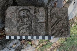 | Description / विवरण | This is a fragment of the temple which is rectangular in size. The frontal part is carved with creepers where a boar is present. The left side of the fragment is decorated with creepers. Other parts are devoid of any decorations. |