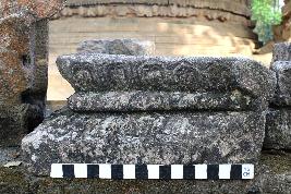 | Description / विवरण | This is a decorative architectural fragment of the temple. The frontal part is composed of decoration whereas in the upper part floral design along with pearl shape motifs are present in a row. There is a horizontal band is present in the middle part. On the other hand, the lower part consists of a floral design with pearl shape motifs. |