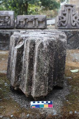 | Description / विवरण | This is an architectural fragment of a temple. There are sockets are present on the top which was used for the iron clamp. On the frontal side, there are steep vertical edges are carved which have a floral pattern on the upper part. |