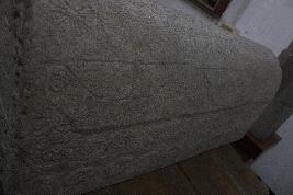 | Description / विवरण | It is an architectural decorative panel of a monument. This panel is rectangular-shaped with ends like parabolic arches.There are four faces to the panel that is carved on a granite boulder. On one end, except for few chiselled marks, it is completely devoid of any designs or engravings. The other end is intricately engraved with a short five lines of Islamic calligraphy. The engravings are almost worn out due to weathering. The inscription is surrounded by vegetal (creepers) motifs in the shape of an arch. Below that, we can observe a single strand of rhombus- shaped pattern is carved horizontally. Further down, there are three shallow miniature niches carved in a row. The niches are scalloped-shaped arches which were popular feature of Mughal art and architecture. There are Islamic calligraphic letters meticulously etched inside the niches. On one of the wider sides, there are three columns of different carvings. The first row has vegetal motifs and the next has rhombus-shaped geometric pattern on it. Farther, there are eight shallow scalloped-shaped arches with almost eroded calligraphic letters inscribed within. Unlike the rest, this frontal side has many elemental features embodied on it.The other side has similar eight numbers of niches, however, the carvings are eroded compared to the rest. Above those, there are vegetal and floral motifs carved in a horizontal band. Beginning from the left side, there are three boat-like engravings lined up one after the other. The last two have wheel-like with spokes shapes carved on each end of the boats. There are two parallel rhombus-shaped patterns carved in the entire front. However, the pattern faced a discontinuation due to a four line Islamic inscription etched in between. Socket-like depression on top of the panel. |