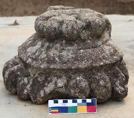 | Description / विवरण | This is a broken amalaka and part of the temple architecture. The amalaka has the Chandrika and amalasarika parts in it. One side of the amalaka is broken. |