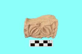 | Description / विवरण | A part of decorated brick having a floral design look. Two flower petals are present in a square shape border having carved triangular pattern in the border. |