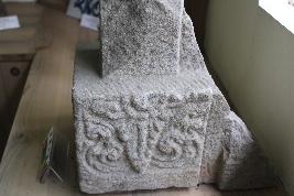 | Description / विवरण | It is a broken architectural fragment having floral and geometric design on three frontal sides. There is a broken squarish part at the center of the fragment. |