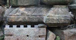 | Description / विवरण | This is a part of the adhisthana of a temple.It is sloped from the top which is carved with floral motive. On the edge from the front side flat horizontal band is carved where there is the remain of eroded floral carvings. |