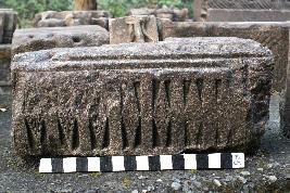 | Description / विवरण | It is an architectural fragment. On the top, there is a row of pearl shape arch and upward triangles. On the frontal surface row of diamond shape design are present which is covered with floral motifs within it. Vertical rectangular bands are separating each diamond shape design on the surface. |
