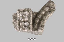 | Description / विवरण | Architectural member decorated with floral design and a chain of gadroons. |