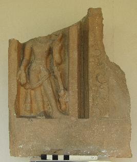 | Description / विवरण | Door Jamb showing Avalokiteswar Padampani in Varad mudra. Head and left shoulder missing, on left side floral band is depicted. |
