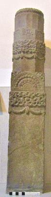 | Description / विवरण | Column with square, octagonal and sixteen sided section. The decoration consists of two friezes of loin (Kirtimukha) heads with festoons of beads below and half lotus rosettes above them. |