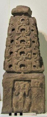 | Description / विवरण | Miniature Brahmanical shrine surmounted with amalaka, Paga (projected portion) are decorated with rows of chaitya, window motifs Bada (cubical section) showing deity (they are not identifiable). |