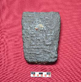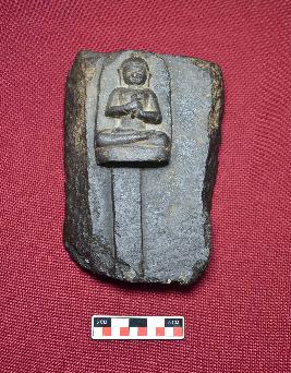 | Description / विवरण | This is a fragmentary stone, Buddha plaque showing a Dharmachakra Pravartana Mudra. The figure is seated on seat. |
