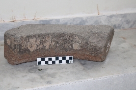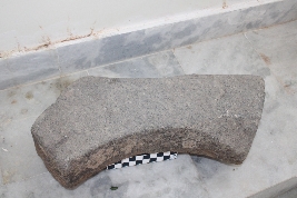 | Description / विवरण | It is a segmented-arch-shaped broken part of a temple architecture carved out from a granite boulder. The top surface of the structure has carving of gentle sunken relief geometric patterns resembling to that of cord impressed marks. |