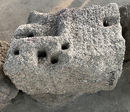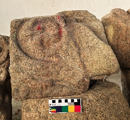 | Description / विवरण | This represents a part of the temple plinth resembling triratha architectural base, consisting of shallow sockets along with a clamp impression on both its right and left surface. The fragment has carvings of step-like features which were layered on top of each other in vertical manner from top surface till the bottom surface. The rathas were usually projections on a plan of the structure. Here triratha refers to three layered projections found in temple architectures. |