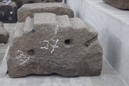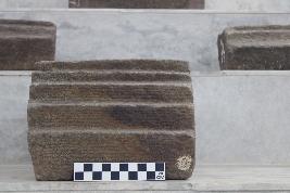 | Description / विवरण | It is a segmented arch-shaped architectural block consisting of square-shaped shallow sockets along with clamp impressions on both the right and left sides of the block. The uppermost part of the block has high-relief carvings of three-layered step-like features, that were placed on top of each other. The features were carved on top of the arch shaped structure which were similar to that of triratha projections. The rathas were usually projections on a plan of the structure. Here triratha refers to three layered projections found in temple architectures. |