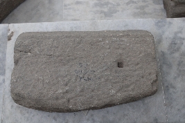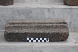 | Description / विवरण | It is a rectangular-shaped architectural fragment, consisting of a square-shaped shallow socket and clamp impression at its top surface. Below that, the frontal surface is inclined downwards having carvings of step-like features that were layered one after another, in a vertical manner. |
