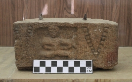 | Description / विवरण | This is a stone block that features a human-like figure at the centre. On either side of the figure, there are v-shaped beaded designs that have been intricately carved. The image suggests that there was a tribal influence during that period. However, other details in the image remain unclear. |