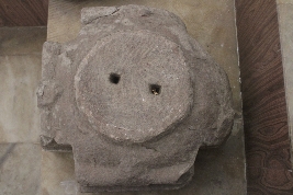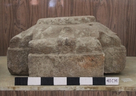 | Description / विवरण | This is a pillar base fragment with a circular top with a four-side extension that has a step-like structure. The circular top has two square sockets, while the rest of the details are unclear. |