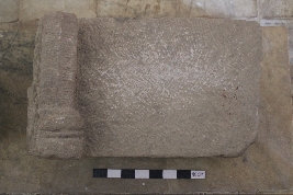 | Description / विवरण | This is a rectangular-shaped architectural fragment with a pillar-like structure on one side of the member. The base of the structure has horizontal line cravings and the rest of the details are unclear. |