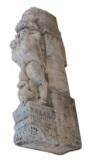 | Description / विवरण | Pillar showing rampant lion with wide open mouth and protruding and hanging tongue. Probably a man is pulling reins from behind the pillar. A baruvahaka figure is shown on the top. Underneath the base are circular mouldings. |