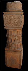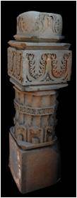 | Description / विवरण | This pillar has four setions from bottom above. The base part is plain and measures 52 cm in height.The shaft above this section measures 56 cm in height and 45cm in width.It is decorated with a series of floral reliefs at the base and above it sixteen flutings is held by a octogonal decorated band depicting diamond shaped flowers.The next rectangular section measuring 29 cm in height is decorated with foliage encircled by two rows of beaded garland emanating from bud.The circular section above this measures 24 cm in height is decorated with scrolls |