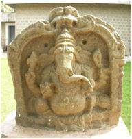 | Description / विवरण | A seated four armed Ganesha, holding the tusk, the goad, the noose, and the bowl in his hands. At the centre of the pedestal is seen a rat. |