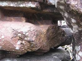 | Description / विवरण | The stone block has only two moldings. One is flat and other is rounded. In between the two a recess is visible. Two groove arks for socketing are visible on the upper surface. |