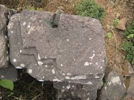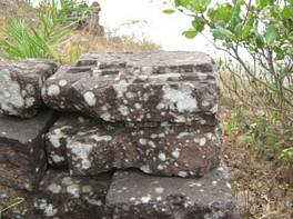 | Description / विवरण | The stone block has only two moldings on one side. One is flat and plain and other is rounded. One hole for iron dowels is visible. On the upper surface near to the rounded moldings two step like designs are carved out on the upper surface. |