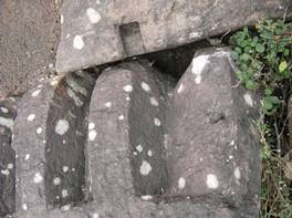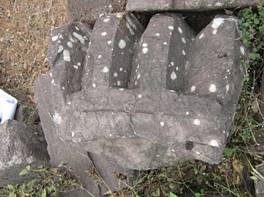 | Description / विवरण | The stone block has the ribbed projections of the amalaka. There are four ribbed projections visible on upper surface. A deep line is continuing partly along with the ribbed portion. |